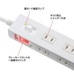 - [サンワサプライ 雷ガードタップ(10個口・2m) ホワイト TAP-SP2110N-2W [TAPSP2110N2W]] の商品説明●小型ACアダプタが差し込める(差込口ピッチ45mm)10個口電源タップ。iPadなどのタブレットの充電器接続に便利です。●雷ガードを内蔵しており、恐ろしい雷から機器をガードします。雷ガード作動中確認ランプ付きです。●一括集中スイッチ付きで、接続した機器の電源をまとめてON/OFFできます。●ブレーカーを内蔵しており、許容量をオーバーした場合ブレーカーが作動し事故を防止します。●スチール机に仮固定できるマグネット付きです。●差込口にはシャッターが付いており、異物混入やホコリ防止にも役立ちます。≪ブレーカー作動時間について≫接続している機器の消費電力の合計が1500Wを超えた場合、ブレーカーが作動し電源が切れます。≪ご注意≫消費電力が1500Wを超えても、すぐに電源は切れません。オーバーした消費電力の%によって、ブレーカーが作動するまでの時間は異なります。135%オーバー時(2025W)約1時間200%オーバー時(3000W)約4〜50秒300%オーバー時(4500W)約0.8〜12秒500%オーバー時(7500W)約0.3〜4秒 ※室温25℃の場合≪ブレーカーが作動した場合≫一度接続した機器をタップから外し、1500W以下になるように機器を取り除き、リセットボタンを押して再度お使いください。●※画像はイメージです。[サンワサプライ 雷ガードタップ(10個口・2m) ホワイト TAP-SP2110N-2W [TAPSP2110N2W]]のスペック●定格容量:15A・125V(1500Wまで)●プラグ:2P(絶縁キャップ付きスイングプラグ)●差込口形状:2P・10個口(ノーマルタイプ)●差込口間隔:45mm(1個口だけ58mm間隔があります)●シャッター:あり●マグネット:あり●雷ガード:あり●制限電圧:395V●サージ耐量:2500A●バリスタ電圧:240V●ブレーカー:一括集中スイッチ型●コード長:2m●寸法:W30.0×H2.7×D4.5cm●質量:約450g●使用地域:日本国内のみ。日本以外ではご使用いただけません。●適合規格:電気用品安全法(PSE)技術基準適合品○返品不可対象商品
