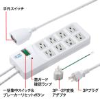 雷ガード内蔵、一括集中スイッチ&手元スイッチ、ブレーカー付きタップ。ホワイト・3P・8個口・2.5m。TAP-SP307 サンワサプライ