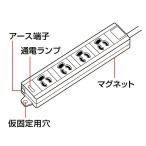 3P抜け止め4個口、マグネット・通電ランプ付き電源タップ。3m。TAP-MG341N2-3 サンワサプライ