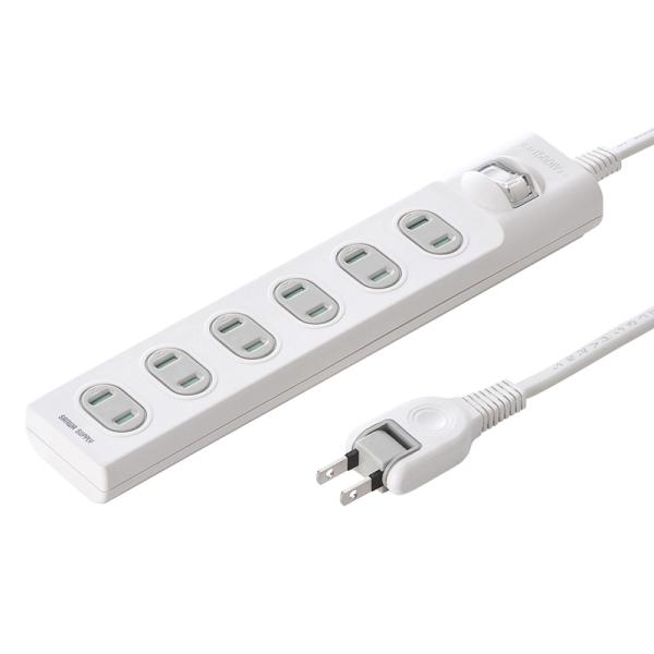 一括集中スイッチで電源のON・OFFが便利。トラッキング火災対策に最適な、電源タップ。2m。2P・6個口。 サンワサプライ。