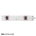 - 3P抜け止め7個口、マグネット、雷ガード付き。ネームタグ、専用コンセントキャップ付属●スチールデスクなどに仮固定できるマグネット付きです。●雷サージ吸収素子内蔵で雷から機器をガードできます。●環境に優しい簡易ビニール(PE素材)包装を採用しています。●接続された機器の識別に、油性ペンによる手書きが可能なネームタグ付きです。●ホコリの侵入防止に便利な、抜け止め専用コンセントキャップ2個付きです。●RoHS指令に対応しています。■定格容量:15A・125V(1500Wまで)↓■プラグ:3P↓■コード長:3m↓■付属品:ネームタグ(7枚)、抜け止め専用コンセントキャップ(2個)↓雷ガード↓■バリスタ電圧:240V↓■制限電圧:395V↓■サージ耐量:3500A(1回)2500A(2回)↓