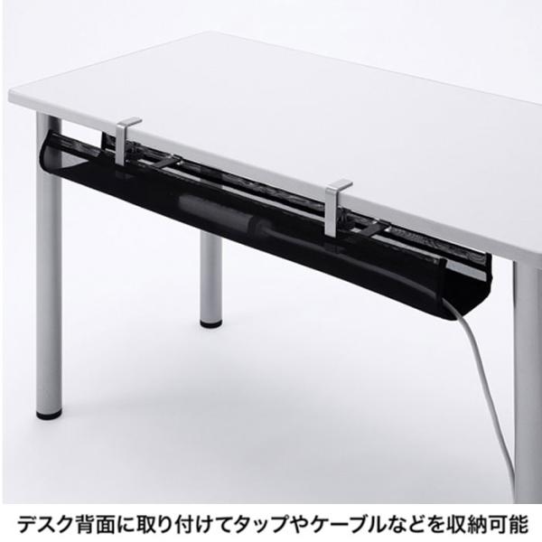 - ●デスクに取り付けて、タップ、ケーブルなどを収納することができます。