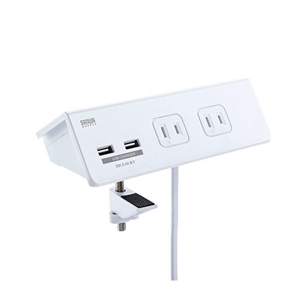 サンワサプライ USB充電ポート付き便利タップ(クランプ固定式) 2P・4個口+USB 2ポート TAP-B105U-3W