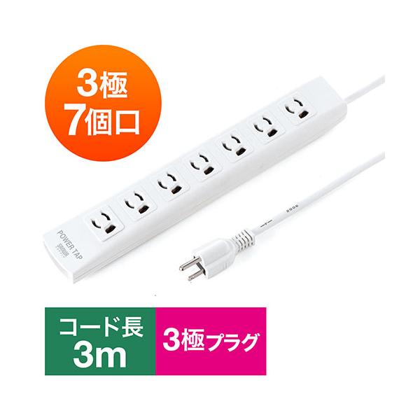 電源タップ マグネット固定 雷サージ 3極 3m 3極プラグ 7個口 700-TAP039 サンワサプライ