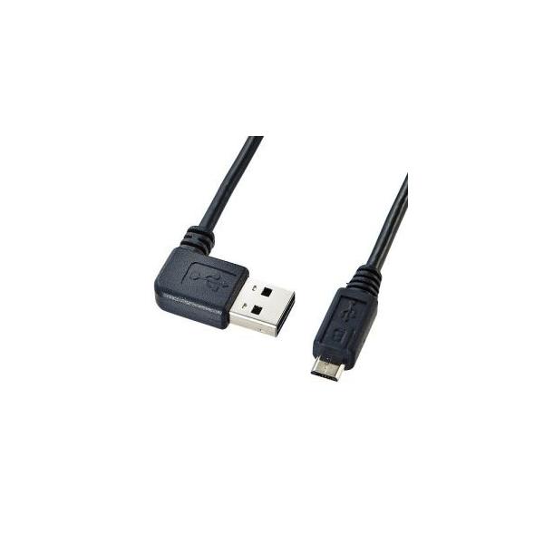 - 【取寄品 出荷:約3−7日 土日祝除く】USBAコネクタの向きを気にせず挿せるL型マイクロUSBケーブル0.5m黒