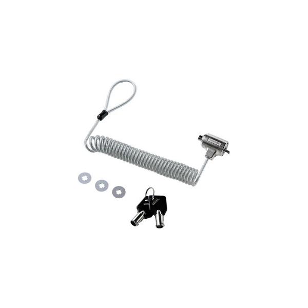 - 【返品種別A】□「返品種別」について詳しくはこちら□2009年03月 発売※本製品はパソコンなどの盗難やデータの抜き取りを予防するもので、万一発生した盗難・事故などによる被害・損失については 販売店及びメーカーは保証しかねます。◆ノート・デスクトップパソコンのセキュリティスロットに簡単取り付けできます。◆ワイヤーがカールコードになっており、取り付け後、余分なワイヤーが邪魔になりません。 ◆錠とワイヤーが一体型なので、邪魔になりません。◆着脱が簡単だから、会議や出張など、ノートパソコンを持ち運ぶことが多い方に最適です。◆パソコンと取り付け部の間に緩みが生じる場合は、付属のスペーサーを使用するとしっかり取り付けできます。※ワイヤーを長く伸ばした状態で取り外す際は、本体をしっかりと持ち、元に戻るワイヤーにご注意ください。■ 仕 様 ■対応機種:セキュリティスロットを持つノートパソコン、デスクトップパソコンなど※セキュリティスロットの有無については本体取扱説明書などをご確認ください。一部のノートパソコンには対応しておりません。サイズ: ・ワイヤー長:0.3〜1.9m ・ワイヤー直径/4.2mm ・スペーサー/厚さ1.6mm、0.8mm、0.4mm ・シリンダサイズ/W32.4×H29.5mm、直径20.8mmワイヤー部材質:亜鉛(ビニールコーティング加工)セット内容:本体×1カギ×2個スペーサー×3(厚さ3種類、各一個)[SL52]OAサプライ/OA機器>情報漏洩防止商品>盗難防止用>セット品