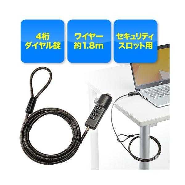 セキュリティワイヤー ダイヤル錠タイプ 情報漏えい保護 盗難防止 ブラック EZ2-SL010BK ネコポス対応