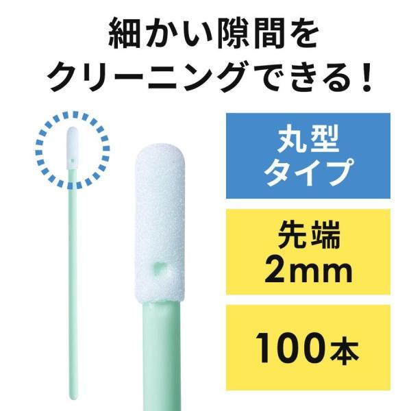 精密綿棒 極細綿棒 先端2mm 丸型先端 プラスチック製 100本入り クリーニング クリーナー 精密機器 電子タバコ AirPods イヤホン などの掃除に 200-CD056