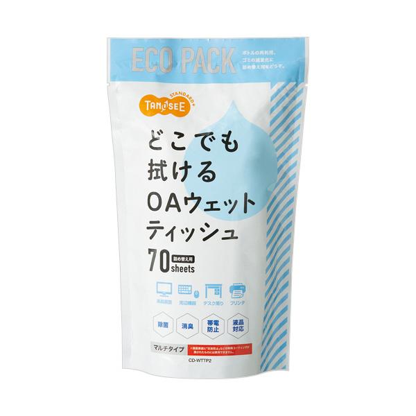 TANOSEE サンワサプライ OAウェットティッシュ(マルチタイプ) 詰替用 CD−WTTP2 1個(70枚)
