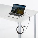 付属のワイヤーを机の脚などに巻き付け、本体と接続して、盗難防止になります。