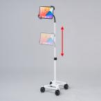 iPad・タブレットをアームに取り付けたまま楽々移動できるキャスター付きスタンド。ホワイト。CR-LASTTAB16W サンワサプライ
