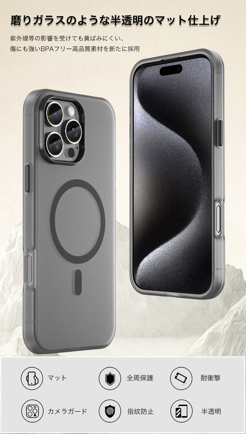 アイホン ケース MagSafe おしゃれ 耐衝撃 マット 半透明 オシャレ カバー スマホケース カメラ保護 衝撃吸収 軽量 薄型 お得セット iPhone用充電ケーブル同梱 1m データ転送 急速充電対応 爆買 クリスマスプレゼント - 楽天での商品説明(AMBショップ)