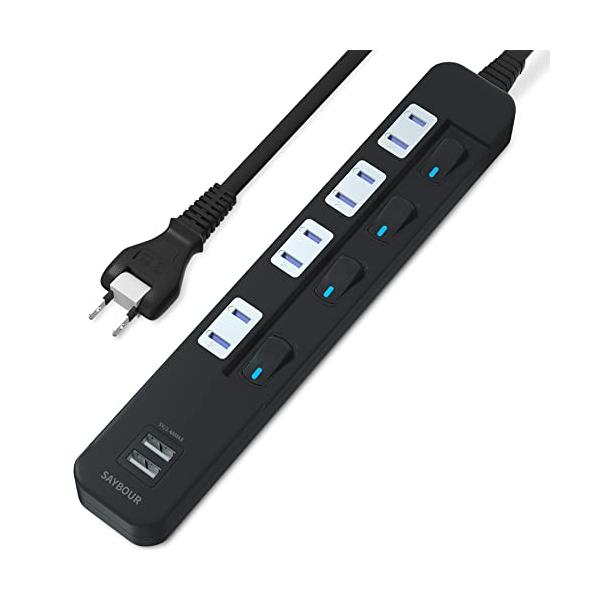 SAYBOUR タップ電源タップ 3.4AUSB 付き PSE認証済 雷ガード 省エネ 個別スイッチ 4+2(AC差し込み口 +USBポート)