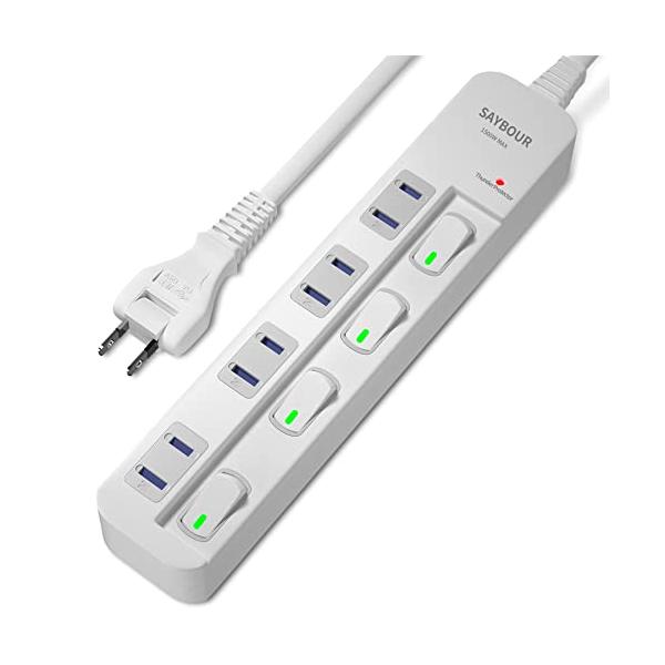 SAYBOUR 電源タップ 雷ガード 個別スイッチ 節電タップ おしゃれ省エネ ACコンセント 4個口LED PSE認証済 延長コード(1m ホ