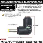 外径5.5mm内径2.5mm(メス)→外径4.75mm内径1.7mm(オス)変換L型アダプタ 充電器・パソコン端子変換 DC端子サイズ変換 充電や電力供給 ZUUN 5525ZC4717L