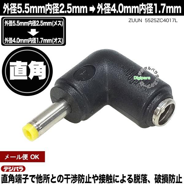 外径5.5mm内径2.5mm(メス)→外径4.0mm内径1.7mm(オス)変換アダプタ L型 充電器・パソコン端子変換 DC端子サイズ変換 充電や電力供給 ZUUN 5525ZC4017L