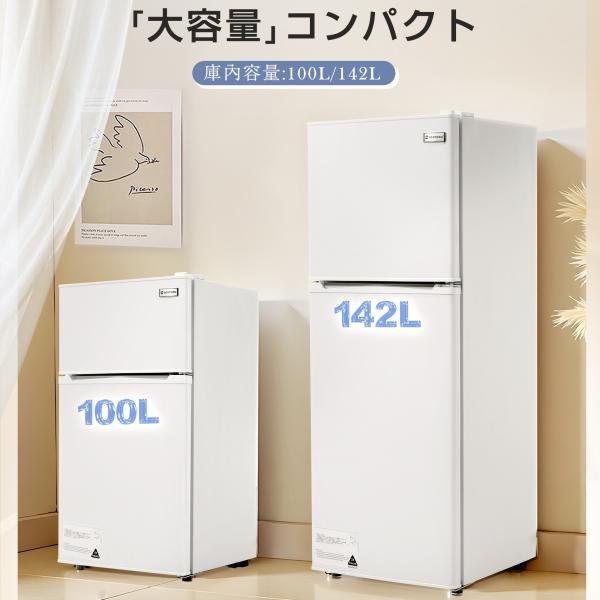 冷蔵庫 冷凍庫付き 一人用 100L/142L おしゃれ 冷凍冷蔵庫 仕切り棚 庫内灯 温度調節 コンパクト 家庭用 ミニ冷蔵庫 シングル ひとり暮らし 小型 新生活