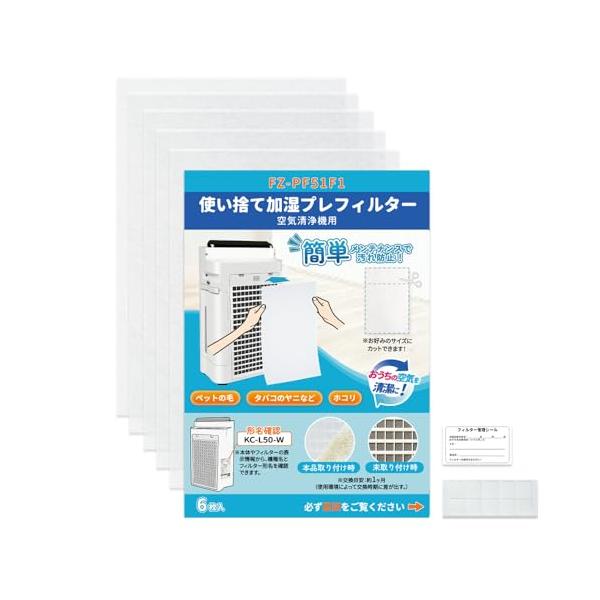 互換品FZ-PF51F1 シャープ加湿空気清浄機交換用フィルター 6枚入り 使い捨てプレフィルター KC-H50 KC-G50 KC-F50対応 空気