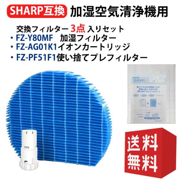 空気清浄機 フィルター シャープ fz-y80mf 加湿フィルター fzy80mf sharp fzag01k1 agイオンカートリッジ交換用 互換品 空気清浄機 FZ-PF51F1 6枚入り 3点セット