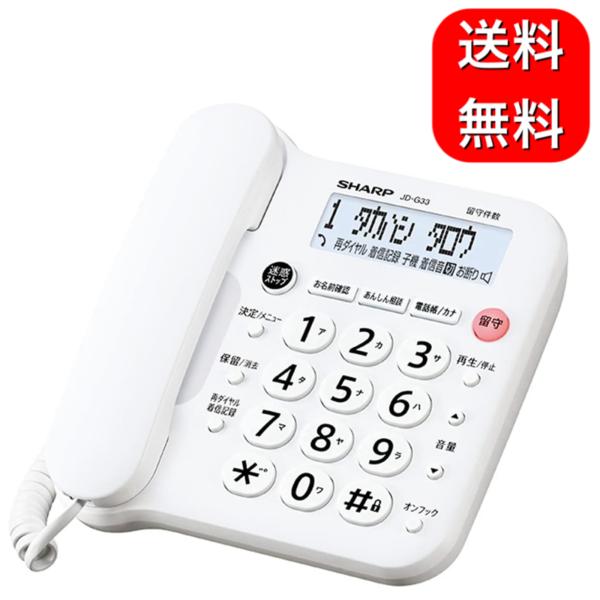- 【商品解説】●シンプルで見やすいキーレイアウトで詐欺・迷惑電話対策も充実●文字がくっきり見える「ホワイト液晶」を採用●ワンタッチで詐欺・迷惑電話を撃退できる「迷惑ストップボタン」を搭載【スペック】●型式:JD-G33CL(JDG33CL)●JANコード:4974019205700親機サイズ(H×W×D) mm:約70×159×172子機サイズ (H×W×D) mm:約165×49×26充電器サイズ (H×W×D) mm:約101×79×70重量:親機:約450g(ACアダプター含まず) 子機:約127g(充電池含む)充電器:約114g付属子機数:子機1台子機増設台数:あと2台停電時対応:停電時対応あり電話帳登録件数:親機:10件、子機:100件短縮登録件数:子機:2件スピーカー音量段階:親機:5段階、子機:10段階着信音種類/音量段階:5段階・切着信拒否機能:有(100件)留守録合計時間:約10分/50件自作応答メッセージ:有(1種類)ドアホン対応:無防犯機能(電話機):防犯機能あり消費電力:親機:最大2.0W/待機時0.7W 子機:急速充電中0.7W/待機時0.4W付属品:親機、(親機受話器機用)、親機用ACアダプター、子機×1、充電器(子機用)、充電池(子機用)、電話機コード【注意事項・特記事項】※お一人様1台限りとさせていただきます。お一人様で複数回ご注文の方、同一ご住所からのお名前を変えてのご注文をされている方、弊社にて転売目的と判断させて頂いた場合につきましてはご注文をキャンセルさせて頂きます。この商品は宅配便でお届けする商品です出荷可能日から最短日時でお届けします。※出荷完了次第メールをお送りします。配送サービス提供エリアを調べることができます「エリア検索」をクリックして、表示された画面にお届け先の郵便番号7桁を入力してください。ご購入可能エリア検索お買い上げ合計3,980円以上で送料無料となります。※3,980円未満の場合は、一律550円(税込)となります。●出荷可能日から最短日時でお届けします。(日時指定は出来ません。) ※お届け時に不在だった場合は、「ご不在連絡票」が投函されます。 「ご不在連絡票」に記載された宅配業者の連絡先へ、再配達のご依頼をお願いいたします。●お届けは玄関先までとなります。●宅配便でお届けする商品をご購入の場合、不用品リサイクル回収はお受けしておりません。●全て揃い次第の出荷となりますので、2種類以上、または2個以上でのご注文の場合、出荷が遅れる場合があります。詳細はこちら■商品のお届けについて商品の到着日については、出荷完了メール内のリンク(宅配業者お荷物お問い合わせサービス)にてご確認ください。詳しいお届け目安を確認する1度の注文で複数の配送先にお届けすることは出来ません。※注文時に「複数の送付先に送る」で2箇所以上への配送先を設定した場合、すべてキャンセルとさせていただきます。