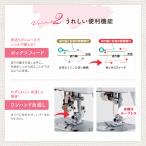 ■主な機能…ボックスフィード、ワンハンド糸通し、自動糸切り、らくらく下糸巻、下糸らくスルー、コンピュータ式自動糸調子、押え圧力調整、段ぬい押えボタン、針上下ボタン、7枚送り歯、糸切れ検知、ドロップフィード、LED手元ランプ、止めぬい、ワンタッチスローボタン、全自動ボタンホール