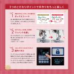 ■主な機能…ボックスフィード、ワンハンド糸通し、操作パネル、押え圧力調整、自動糸切り、LED手元ランプ、らくらく下糸巻、コンピュータ式自動糸調子、下糸らくスルー、お知らせランプ、全自動ボタンホール、文字ぬい、静音設計、止めぬい、ワンタッチスローボタン、針上下ボタン、糸切れ検知、ドロップフィード、手ぬい風キルトステッチ