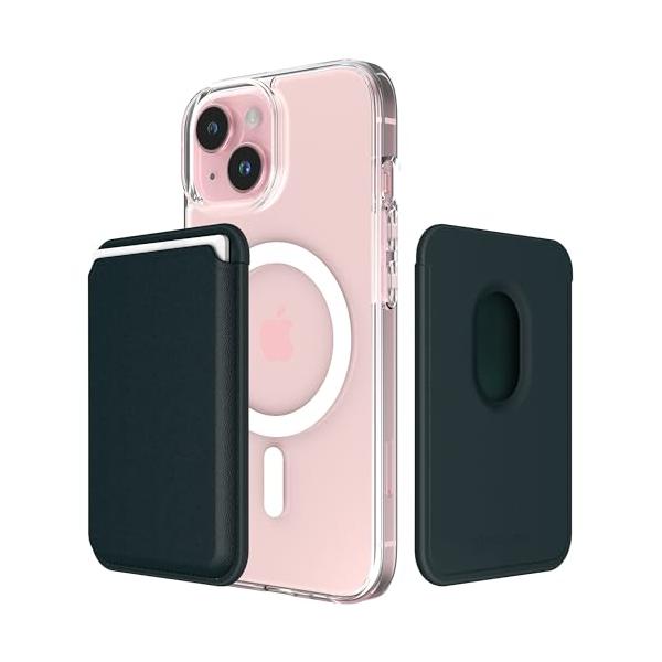 人気カラーシリーズ新登場Sinjimoru Magsafe対応 ヴィーガンレザーカードウォレット、強力磁力 3枚収納 カード収納 固定クリップ内