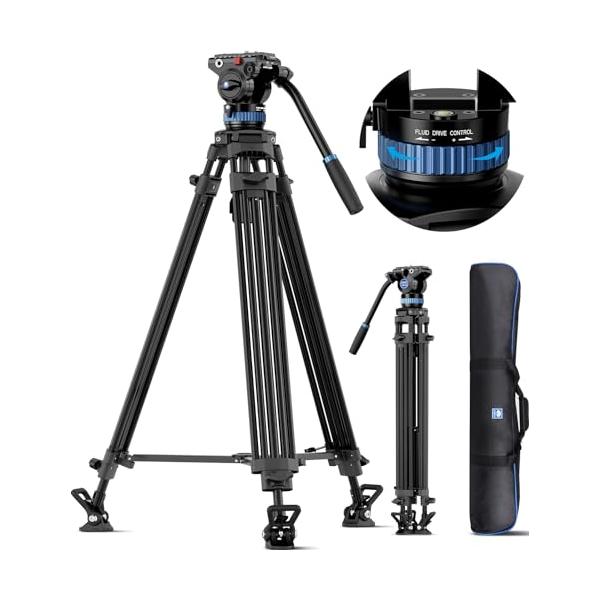 - 【頑丈なアルミニウム合金三脚】強力な伸縮式デュアルレッグチューブとセンタースプレッダーを備えたアルミニウム合金構造のビデオ三脚は、信頼性の高い安定性と最大22.0lb/10kgの重量をサポートします。 【プロフェッショナルビデオ雲台】ダイナミックバランシングシステムにより、水平360°、垂直方向に-75°〜+90°の無段階移動が可能です。下部のリングは張力の量を調整できるため、頑丈な三脚が左から右にパンして、録音中のスムーズで安定した動きを実現します。 【クイック高さ調整】3段式伸縮式脚三脚の高さは、特大のレッグロックノブとバックルを使用して、36.06インチ(91cm)から74.8インチ(190cm)まで簡単かつ迅速に調整できます。 【安定したサポート設計】内蔵の水準器と75mmのボウル底により、ビデオ三脚の安定性とバランスが向上します。格納式の金属製スパイクフットとゴム製の脚により、凹凸のある地面や滑らかな表面での撮影が可能です。
