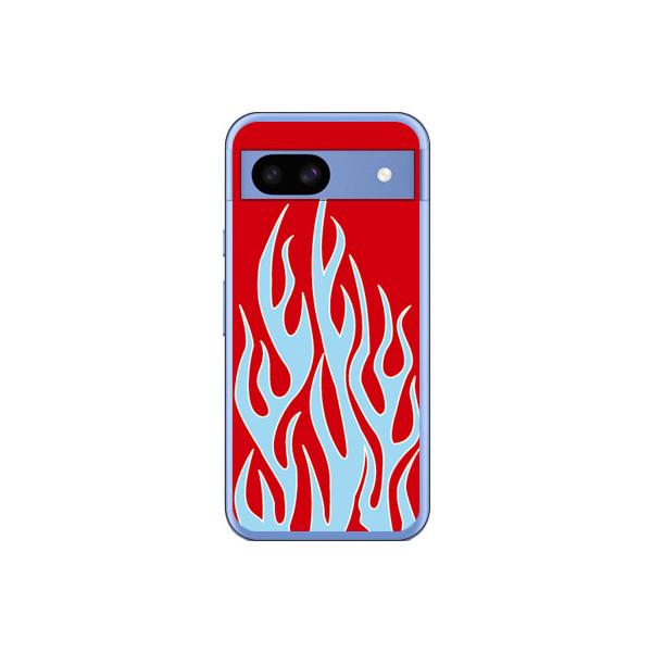ファイヤーパターン レッド×サックスブルー (ソフト ケース カバー) SECOND SKIN Google Pixel 8a
