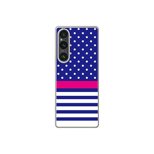 ドット/ボーダー ネイビー (ハード ケース カバー) SECOND SKIN Xperia 1 V SOG10 SO-51D