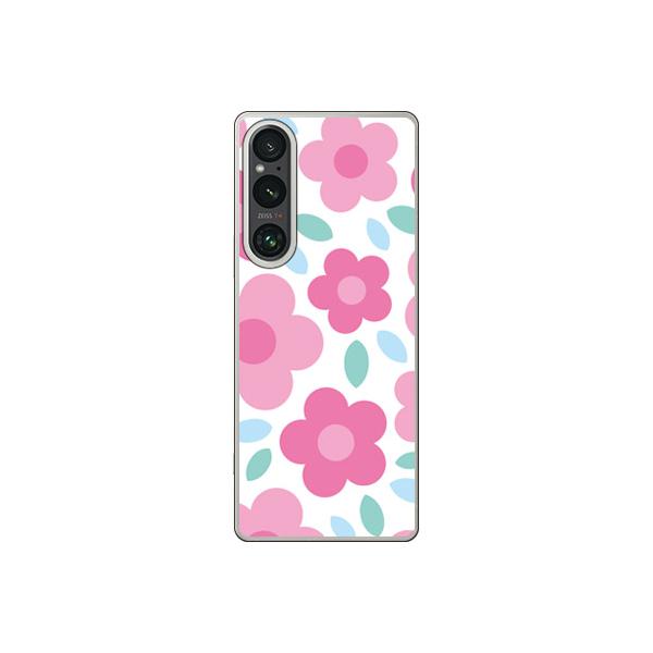 フラワーポップ ホワイト×ピンク (ハード ケース カバー) SECOND SKIN Xperia 1 V SOG10 SO-51D