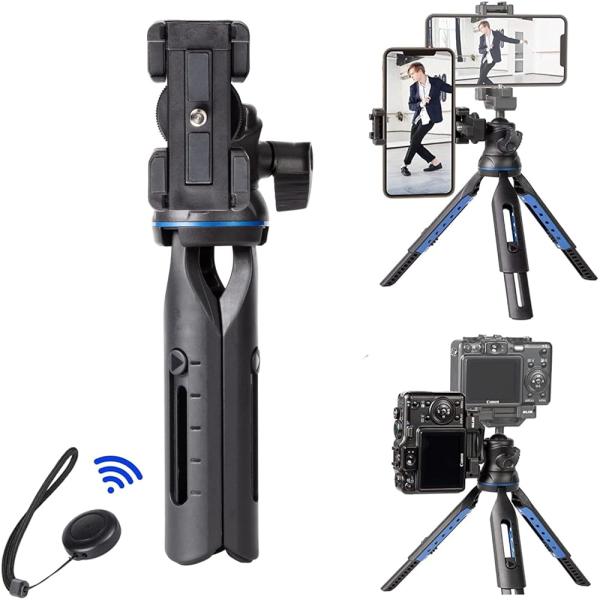 「SLIK マルチポッド スマホR」は、カメラ取付用ネジとスマホホルダー、コールドシューマウントが組み合わせられた多機能自由雲台を搭載した小型三脚です。