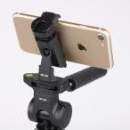 - ■三脚にスマホを取り付けるためのスマホホルダー。■向きを変えることもできます。縦位置・横位置両対応。■ティルト36°可能。対応スマホは、幅58mm〜90mm、厚さ12mm以内。Bluetoothリモコン付。