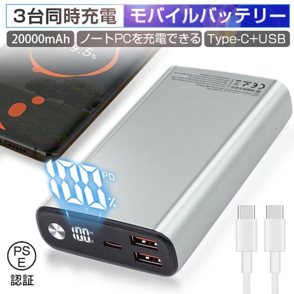 モバイルバッテリー 20000mAh 大容量 PD-65WiPhone17 防災電源 3台同時充電 Type-C入力 残電量表示 3つ出力ポートPSE認証済み【PL保険加入済み製品・安心】