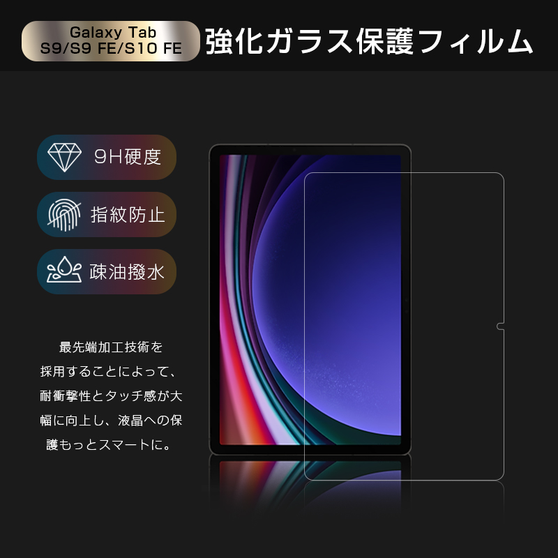 11インチ Galaxy Tab S9 10.9インチ Galaxy Tab S9 FE Galaxy Tab S10 FE対応 強化ガラスフィルム クリア 高透過率 衝撃吸収 摩擦防止 気泡レス 高感度 9H硬度