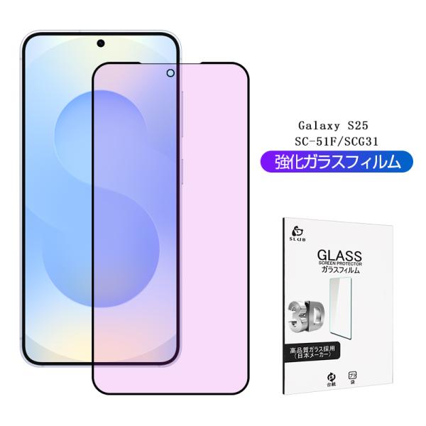 Galaxy S25 SC-51F SCG31 ブルーライトカット仕様 強化ガラスフィルム Samsung GALAXYスマホ用 フルカバー 割れにくい ケース併用可能 超薄型 硬度10H 耐衝撃
