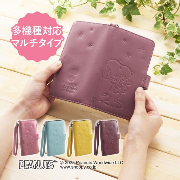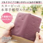 スヌーピー 本牛革 手帳型スマホカバー SNP004 マルチタイプ スライド式 カード収納 ストラップ付 マグネット式