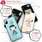 とってもキュートなピーナッツのキャラクター達が描かれたカード収納&ミラー付き耐衝撃iPhoneケースです。