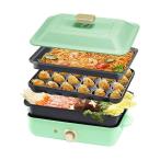 - 【一台多役】付属した三つのプレートで、たこ焼き、焼肉、しゃぶしゃぶ、お好み焼き、野菜炒めなどの様々な料理がチャレンジでき、一人や皆で一緒に料理を楽しむことができ、たこ焼きプレートを一度に24個分を作ることができます。また、透明なガラス蓋が付いているので、調理の様子が確認できて嬉しいです。【加熱均一のヒーター設置】今回特別な加熱均一のヒーターが内蔵されているため、プレート全体に熱が伝わりやすく、短時間で高温に到達できるメリットもあります。中央下につまみが付いているので、温度調節が簡単です。料理中にも、調理物の様子を見ながら調整することができます。保温性もあり、お好み焼きを作るのにとても便利です。【安全設計・持ち運びに便利】裏面の通気口を設置することで、使用中にも安心調理できます。それにマグネットプラグ式なので、簡単に設置、取り出すこともできます。カバーは強化ガラス製のため、耐熱性、耐衝撃性に重点を置いており、割れにくいです。熱放散ハンドルで握りやすく、触り心地が良く、焦げ付き防止、キッチンから食卓への移動にも大変便利です。 ●カラー: グリーン●素材: ?アルミニウム●ワット数(W): ?1200 W●本体サイズ: ?40.6 x 31.4 x 24.3 cm●重さ: 5.74kg●容量: 3.5L●お手入れ: プレートが簡単に水洗い可能、便利な着脱式デザイン