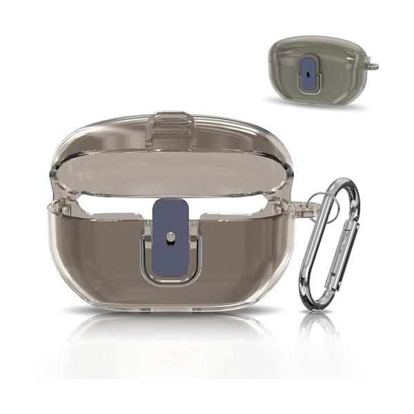 ソニーWF1000XM5用セキュアロッククリアケース、TPUスーパープロテクティブハードシェルショックプルーフ、キーチェーン付き 透明なグレー