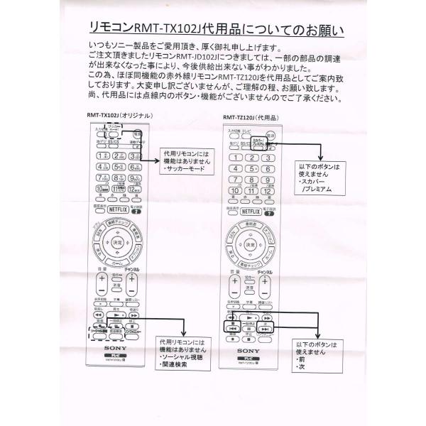 即納在庫あり SONY テレビリモコン(本体付属品)リモートコマンダー RMT-TX102J-RMT-TZ120J (991380413) ZZ-RMTTZ120J