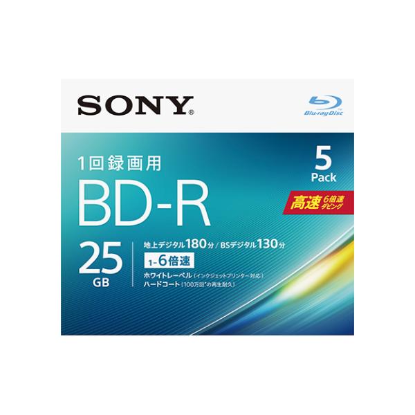 ビデオ用BD-R 25GB SONY 5BNR1VJPS6 6倍速 5枚パック インクジェット対応