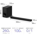 - 迫力ある明瞭なサウンドと臨場感あふれる音場を再現。260Wハイパワーアンプ搭載サウンドバー■前方のスピーカーだけで臨場感豊かなサラウンドを実現する「S-Force PROフロントサラウンド」ソニー独自の高精度なデジタル音場処理技術により、前方のスピーカーだけで仮想的にサラウンド音場を再現。後方にスピーカーを置く必要がなく、すっきりとしたレイアウトで、豊かな臨場感を楽しめます。■高音質と力強い音圧を実現する、新開発「X-Balanced Speaker Unit」搭載音の歪(ひず)みを低減するため新形状の振動板を採用した、新開発の「X-Balanced Speaker Unit」を搭載。振動板の面積を拡大させることでさらなる音の迫力と聞き取りやすいクリアな高音質を実現します。コーンのエッジ部分には特殊なパターンの溝である「セパレーテッドノッチエッジ」を施し、歪みの少ないクリアなサウンドを再生します。■迫力のサウンドを楽しめるスタンダードサウンドバーフロント80W×2、サブウーファー100Wの合計260Wの大出力アンプと、サブウーファーは16cmの大口径ユニットを搭載。迫力のサウンドを手軽に楽しむことができます。■動作状態などを表示する「本体ディスプレイ」搭載本体正面にさまざまな情報を表示するので動作状態がわかります。■サウンドフィールド機能搭載リモコンの「サウンドフィールド」をONにすると、音に包まれるような体験が可能になり、OFFにするとよりピュアなスピーカーの音色を体感できます。■前方のスピーカーだけで臨場感豊かなサラウンドを実現する「S-Force PROフロントサラウンド」ソニー独自の高精度なデジタル音場処理技術により、前方のスピーカーだけで仮想的にサラウンド音場を再現。後方にスピーカーを置く必要がなく、すっきりとしたレイアウトで、豊かな臨場感を楽しめます。■原音に忠実なサウンドを実現するデジタルアンプ「S-Master」スピーカーを駆動するアンプには、小型で電力効率に優れたソニー独自のデジタルアンプ「S-Master」を搭載。本体内での音質劣化を最小限に抑え、原音に忠実な再生を実現しています。テレビ音声をはじめ、映画などの高品位なコンテンツを迫力あるサラウンドで楽しめます。■ワイヤレス再生を手軽に実現する「Bluetooth」テレビとの接続がより簡単になった「オーディオリターンチャンネル(ARC)」■ARCに対応したテレビと本機をHDMIケーブルでつなぐと、テレビのデジタル音声信号が本機に伝送されます。HDMIケーブル1本の接続だけでテレビの音声をサウンドバーでお楽しみいただけます。※ HDMIケーブルは別売です 【HTS400】※本商品が対象となるクーポンは、その期間終了後、同一内容でのクーポンが継続発行される場合がございます。
