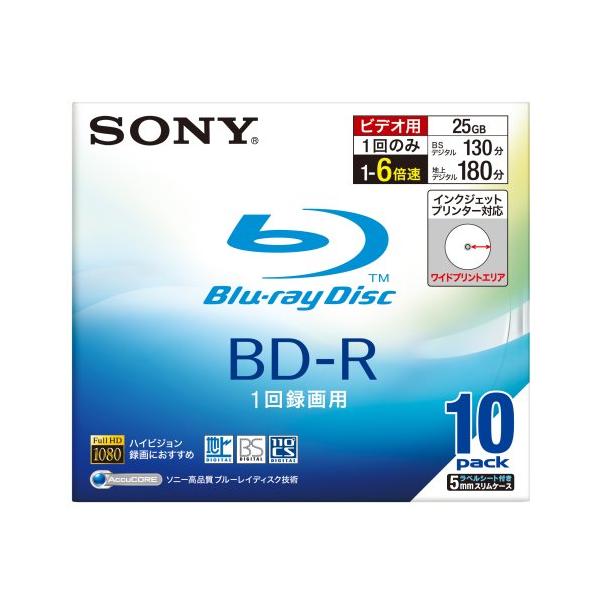 SONY ビデオ用BD-R 追記型 片面1層25GB 6倍速 プリンタブル 10枚P 10BNR1VBPS6