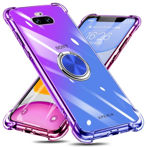Xperia 8 ケース リング付き クリア TPU グラデーション色 SOV42 902SO ケース 耐衝撃 ソニー エクスペリア8カバー