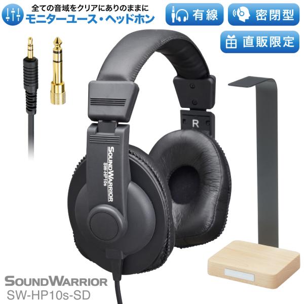 【直販ショップ限定特典付】SW-HP10s-SD SOUNDWARRIOR ヘッドホン 有線 スタンド フック ケーブル 2.5m 黒 音楽 延長コード 変換 3.5mm サウンドウォーリアー