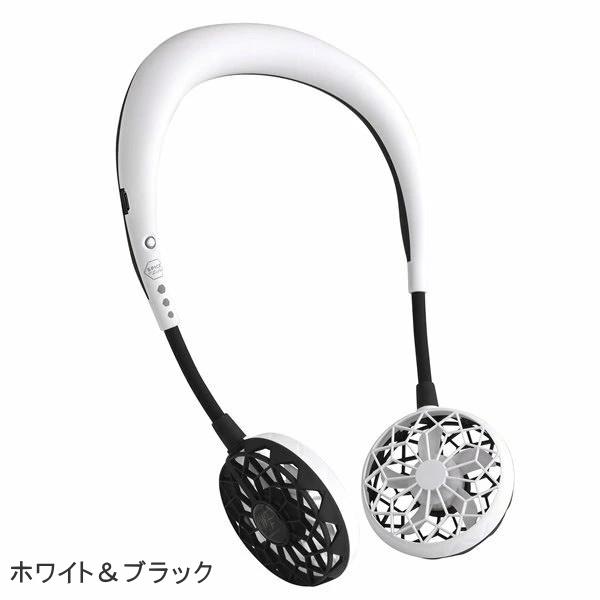 即出荷 ホワイト&ブラック 扇風機 首かけ USB 携帯用 充電式 ヘッドホン型 熱中症対策 おしゃれ WFAN ダブルファン ハンズフリー ver.2.0 DF201WB スパイス
