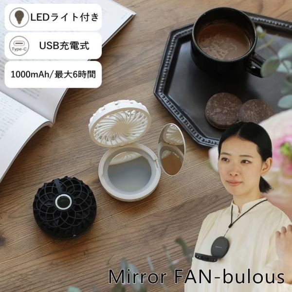 ●コスメのようにいつも持ち歩ける!LED付のコンパクトミラーと一体型になった、フェミニンな小型扇風機です。