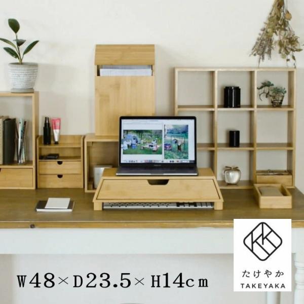 モニタースタンド 卓上 おしゃれ 引き出し 木製 幅48 パソコン台 竹 ナチュラル デスク オフィス 収納