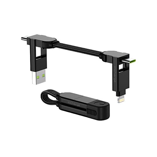 ローリングスクエア inCharge X ポータブルキーチェーン充電ケーブル 1本で6役 マルチ充電ケーブル 100W 超高速充電 ブラック